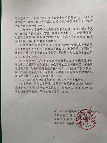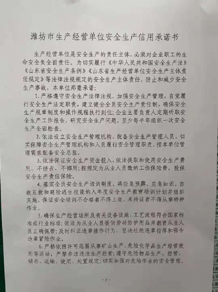 濰坊市生產(chǎn)經(jīng)營單位安全生產(chǎn)信用承諾書